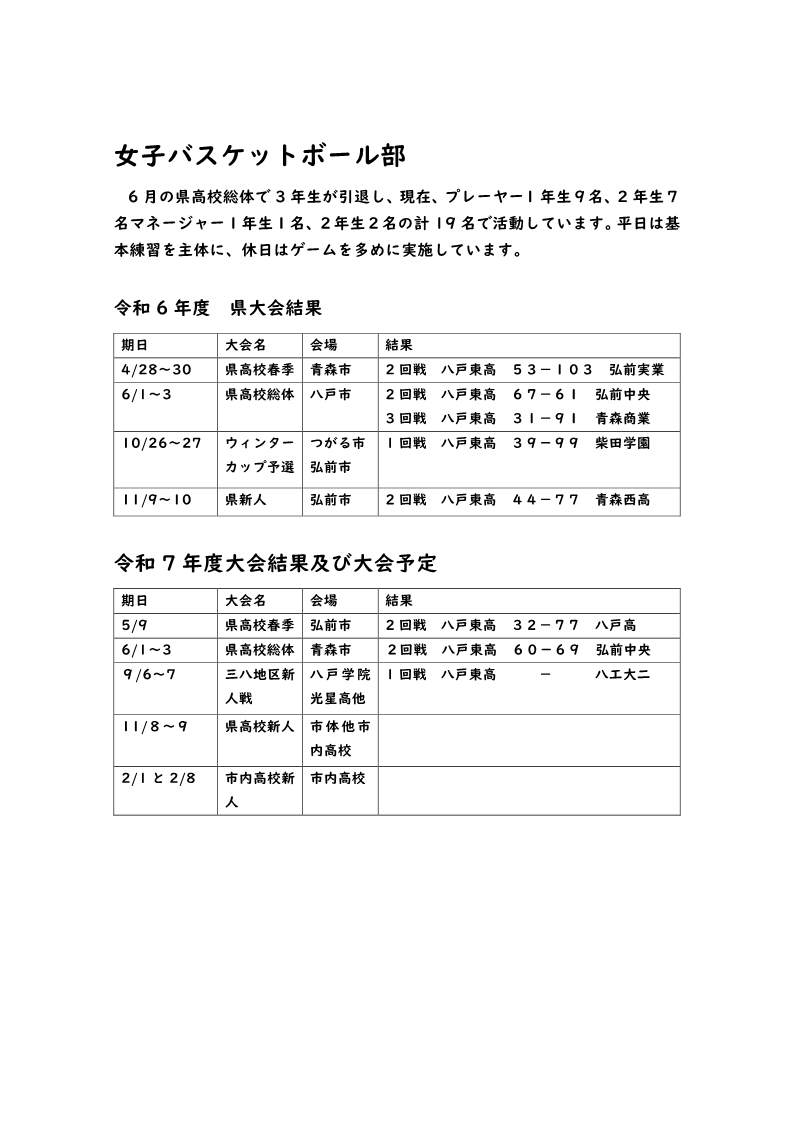 ◆バスケットボール部(女子)