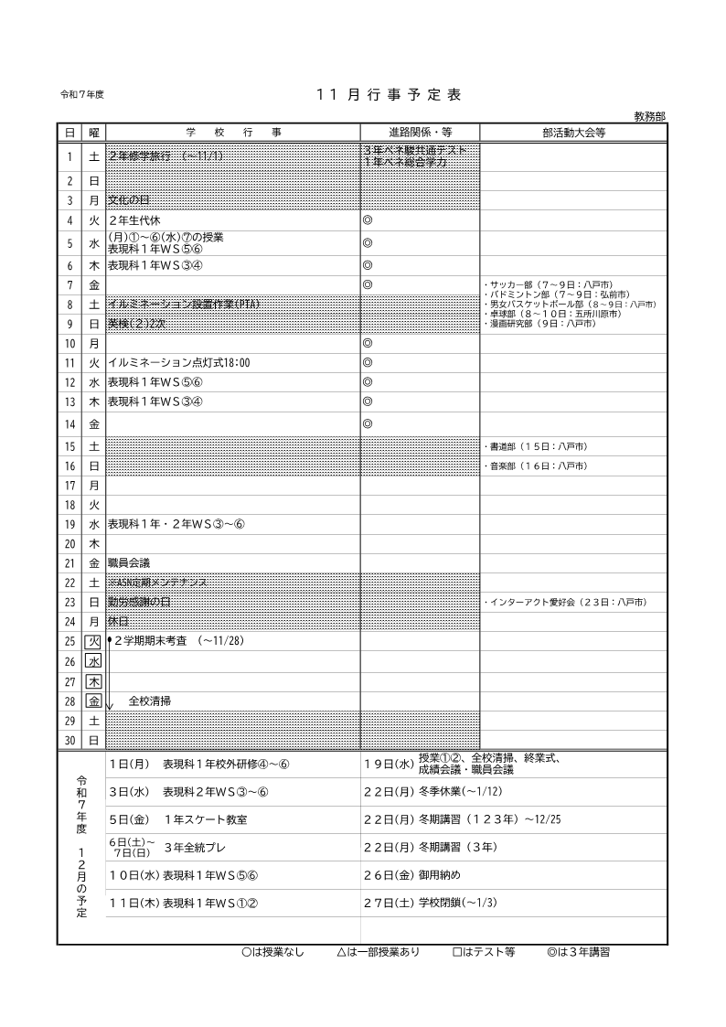 月間行事予定表【11月】